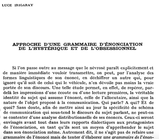 Luce Irigaray publicou esse breve texto em 1967, na revista “Langages”, que tinha por tema de dossiê “Patologia da linguagem”.…